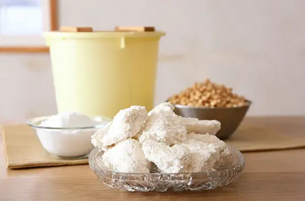 麹と塩をまぜ、塩切り麹を準備しておく。